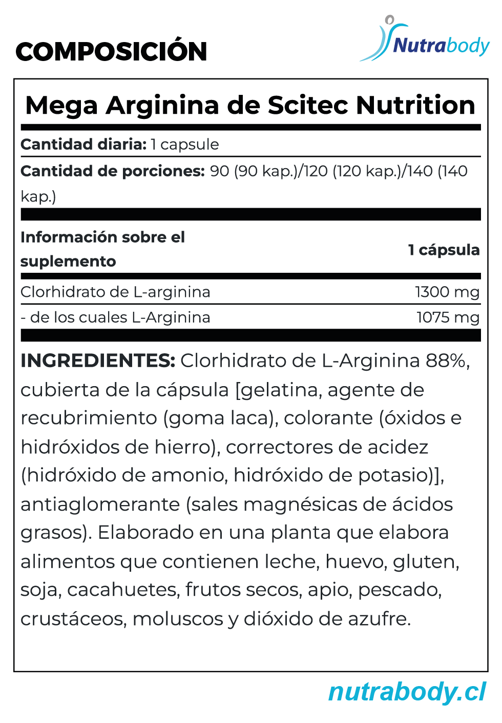 Elaborada bajo estrictos estándares de calidad, Mega Arginina Scitec Nutrition es apta para hombres y mujeres que entrenan de forma regular y buscan un suplemento específico y confiable.