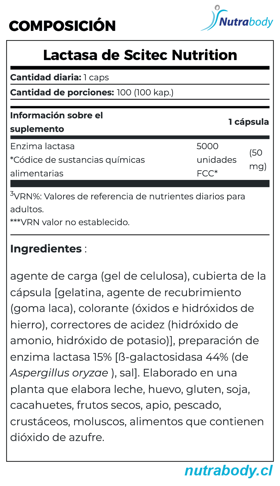 $22.000 Cotizar por WhatsAppLactasa de Scitec Nutrition es un suplemento formulado con enzima lactasa,
