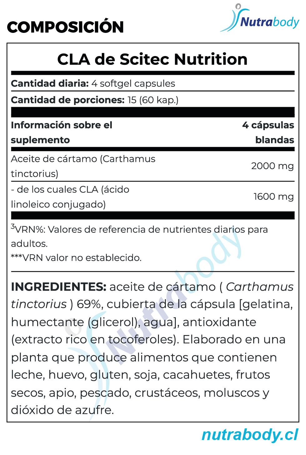 CLA (Acido Linoleico Conjugado) 800 Mg. 60 Cápsulas